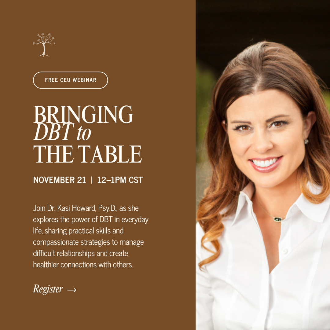 Join Dr. Kasi Howard, Psy.D., Founder of Innova Recovery Center, for a CEU webinar focused on integrating DBT skills into everyday life.